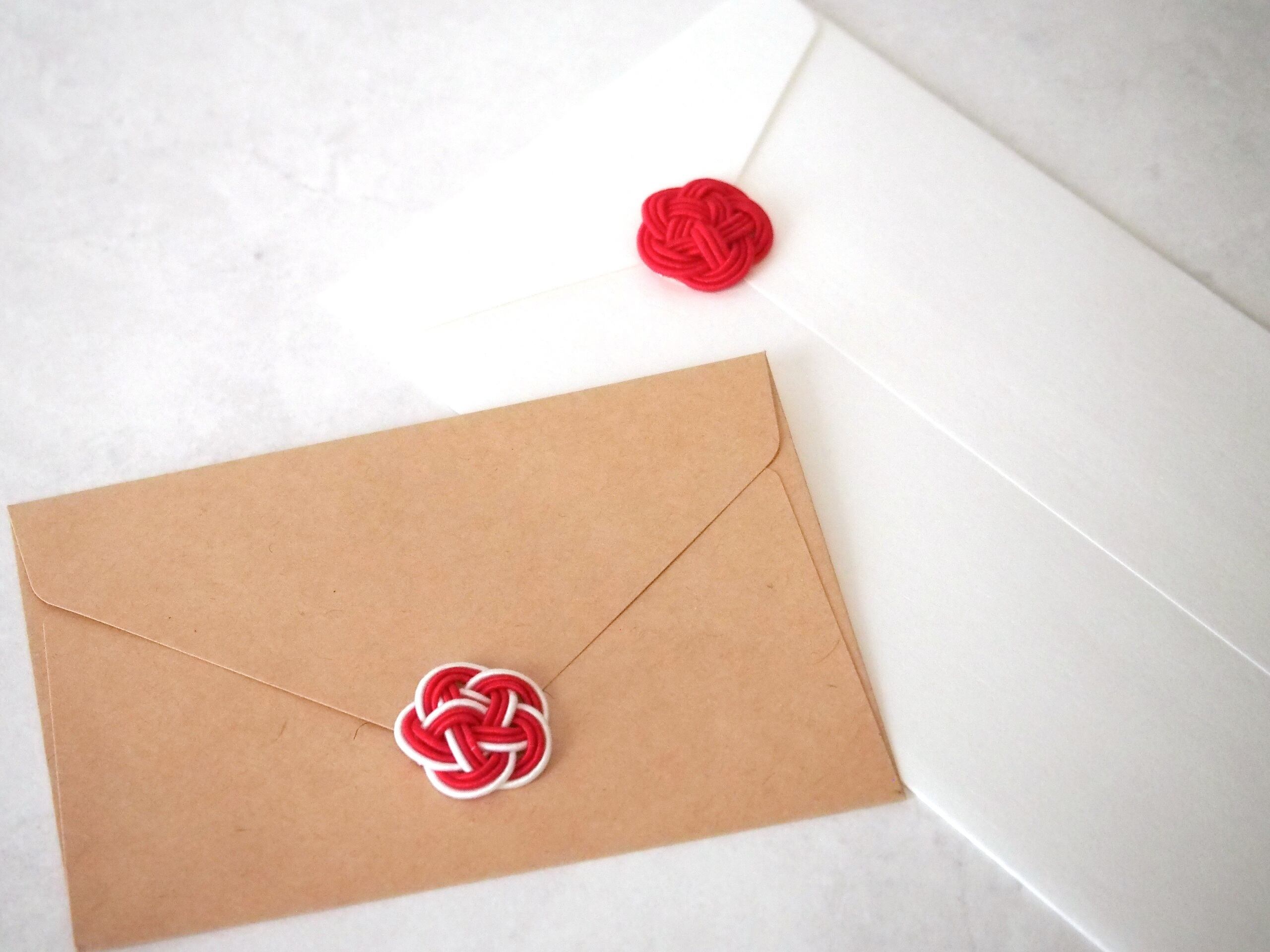 *紅白の水引でひとつひとつ丁寧に結んだ水引シールです。